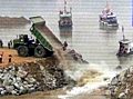 圖:三峽導(dǎo)流明渠截流上游圍堰開(kāi)始截流