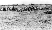 雞公山水稻畝產(chǎn)四萬八真相 2000年7月7日 14:09 ![]() 安徽省樅陽縣一塊號稱畝產(chǎn)1·6萬斤的 “衛(wèi)星田”。田里的稻子是從各地移來的 ![]() 大躍進中,農(nóng)民表決心。照片據(jù)《圖片中國百年史》 □張勝林(河南信陽) 1958年9月1日,信陽縣雞公山人民公社新集大隊放出河南省水稻畝產(chǎn)特大“衛(wèi)星”:6畝6分3厘干部水稻試驗田總產(chǎn)324375·5斤,平均畝產(chǎn)48925·7斤。這顆大“衛(wèi)星”升天后,新華社隨即發(fā)了消息,轟動全國。全省各級領導親臨參觀和總結(jié)經(jīng)驗,9月9日《河南日報》第二版以“雞公山上紅旗插,水稻畝產(chǎn)四萬八”的醒目標題,對大“衛(wèi)星”的組織施放作了詳細報道。 這個被大躍進狂風吹起來的水稻“衛(wèi)星”,雖在當時被歌頌為信陽人民農(nóng)業(yè)大躍進的偉大創(chuàng)舉,卻留下了一個謎:照“衛(wèi)星”田里的水稻總產(chǎn)量計算,那么,這塊“衛(wèi)星”田平均每平方米就得產(chǎn)出稻谷73斤。然而,73斤稻谷就是放在一平方米的空地里,也要堆出一定高度,何況稻谷結(jié)在稻穗上,直徑3毫米左右的稻莖又如何承受得了呢? 為了解開這個謎,我們對當年目睹現(xiàn)場的一些同志進行了反復調(diào)查訪問。在調(diào)訪過程中,這些同志不僅幫助我們弄清了雞公山水稻畝產(chǎn)“四萬八”的真相,而且訴說了雞公山人民當年吞下這個苦果的難言之苦。信陽縣越改越大的躍進規(guī)劃 1957年,信陽縣和全國一樣,勝利實現(xiàn)和超額完成了國民經(jīng)濟第一個5年計劃,各條戰(zhàn)線出現(xiàn)了蓬勃發(fā)展的局面。然而,由于從上到下對成績的宣傳夸張,使一些干部的頭腦發(fā)熱,在指導方針上出現(xiàn)了急于求成的“左”的冒進。1958年2月26日,中共信陽縣委召開擴大會議,制定并通過了《信陽縣全面躍進20條規(guī)劃》,號召和動員全縣人民投入到大躍進的洪流之中。 1958年5月,黨的八大二次會議通過總路線:“鼓足干勁,力爭上游,多快好省地建設社會主義”,在信陽縣宣傳貫徹后,信陽掀起了大躍進的高潮。同月底,中共信陽縣委、縣人委對《信陽縣全面躍進20條規(guī)劃》進行了補充修改,把1958年全縣糧食總產(chǎn)量從原規(guī)劃的8·5億斤提高到“保證實現(xiàn)14億斤,爭取18億斤”(這樣驚人的數(shù)字,信陽縣不僅當年沒有實現(xiàn),就是時隔30多年后農(nóng)業(yè)年景比較好的1996年,全縣糧食總產(chǎn)量也才達到9·5億斤,為1958年規(guī)劃14億斤的67·8%)。同時,中共信陽縣委還提出“十年規(guī)劃,一年實現(xiàn)”的躍進口號。外地衛(wèi)星的刺激 1958年6月,廣東省早稻畝產(chǎn)82525斤和河南省西平縣小麥畝產(chǎn)7320斤,這兩顆“衛(wèi)星”消息傳到信陽縣后,信陽縣感到鼓舞和震動。7月5日,中共信陽縣委召開擴大會議,縣委提出:“必須認識到今年是農(nóng)業(yè)生產(chǎn)大躍進的一年,不是要求增產(chǎn)幾成的問題,而是要翻幾番。因此,必須鼓足干勁,爭取更大勝利”。為了放出信陽縣的農(nóng)業(yè)高產(chǎn)“衛(wèi)星”,縣委要求“樹立敢想、敢說、敢作、敢為的前進思想,從而解放思想,破除迷信”。 7月,全國宣傳貫徹毛澤東主席關(guān)于把工、農(nóng)、商、學、兵組成為一個大公社的指示,信陽縣聞風而動,在全信陽地區(qū)率先建立人民公社。7月22日,中共信陽縣委在雞公山召開擴大會議,決定撤銷全縣32個鄉(xiāng)、鎮(zhèn)及一個辦事處,成立12個人民公社?h委要求,各公社要借人民公社化的東風,更好組織農(nóng)業(yè)生產(chǎn)大躍進,并示意試辦農(nóng)業(yè)“衛(wèi)星”田塊。 縣委擴大會議結(jié)束后,各公社開始籌劃具有本地特色的農(nóng)業(yè)“衛(wèi)星”,棉花、玉米、紅薯等都被列入“衛(wèi)星”計劃之列。雞公山準備水稻“衛(wèi)星” 在籌劃“衛(wèi)星”時,地處豫鄂交界的雞公山人民公社黨委提出,淮河北的西平縣能放出小麥畝產(chǎn)七千三的全國大“衛(wèi)星”,我們淮河南的雞公山為何不能利用我們盛產(chǎn)水稻的優(yōu)勢,放出水稻高產(chǎn)“衛(wèi)星”?只要有雄心,思想再解放,“衛(wèi)星”定能升天。為了選準“衛(wèi)星”的試點,公社黨委曾幾次召開會議研究,最終選擇新集大隊的一塊6畝6分3厘干部試驗田作為“衛(wèi)星”點。 這塊試驗田在5月5日秧苗移栽時,采用了3×3(行距、株距各3寸)的密植法,加之向這塊試驗田投放的肥料較多,公社黨委因之認為,這為我們秋收放“衛(wèi)星”奠定了基礎(經(jīng)過實踐證明,3×3的密植法是一種違反科學的技術(shù)躍進,它不僅破壞了光合作用,而且也不利于農(nóng)田管理,但3×3的密植法當時卻作為農(nóng)業(yè)現(xiàn)代化在全縣推廣)!罢{(diào)兵借將” 8月下旬,水稻已經(jīng)基本成熟,臨近收割。雞公山公社黨委于8月下旬連續(xù)開會,研究如何放出水稻高產(chǎn)“衛(wèi)星”。公社黨委認為,能否成功放出水稻高產(chǎn)“衛(wèi)星”,不僅取決于黨委的信心,而且也取決于黨委一班人的統(tǒng)一認識和統(tǒng)一口徑(所謂統(tǒng)一認識、統(tǒng)一口徑,就是要求黨委每個成員不要對放水稻高產(chǎn)“衛(wèi)星”持任何懷疑態(tài)度,“衛(wèi)星升天”是全社人民的驕傲,也是全縣人民的光榮);而且在向上級匯報中,不準說三道四。這成為雞公山黨委在組織施放水稻高產(chǎn)“衛(w