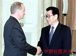 中國(guó)全國(guó)政協(xié)主席李瑞環(huán),7月18日在北京會(huì)見俄羅斯總統(tǒng)普京。中新社記者 滿會(huì)喬 攝