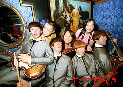 披頭士樂隊(duì)的樂迷與逼真的蠟像合影留念