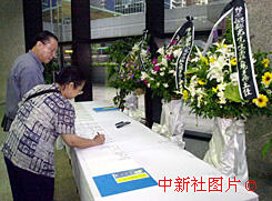 香港市民15日陸續(xù)到入境事務(wù)處大堂,吊唁日前在入境處大樓縱火案中殉職的高級入境事務(wù)主任梁錦光。中新社傳真洪少葵攝