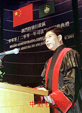 ‘二十日下午,澳門司法界人士為進(jìn)入特區(qū)成立后的第一個(gè)司法年度而舉行隆重典禮,圖為檢察長何超明在典禮上發(fā)表講話。中新社傳真宗金柱攝