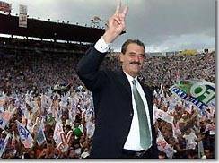 墨西哥當選總統(tǒng)?怂菇裉炀吐殻ǜ綀D) 2000年12月1日 17:06 ![]() 中新網(wǎng)北京12月1日消息:墨西哥當選總統(tǒng)?怂箤⒂诮裉煨木吐殻厣,他將使墨西哥發(fā)生巨大變化。墨西哥在過去71年來都在革命路線黨的統(tǒng)治之下。 將有二十多名政府首腦參加福克斯的就職儀式。作為行動黨的領(lǐng)導(dǎo)人的?怂故侨ツ昶咴庐斶x為墨西哥新總統(tǒng)的。福克斯表示他將與貧窮、毒品、腐敗現(xiàn)象作斗爭,并盡快與齊亞帕斯游擊隊達成協(xié)議。目前有5千萬墨西哥人生活在貧困線以下。 目前革命路線黨在500席的議會里仍控制著211席,并控制了31個州中的19個。- |
