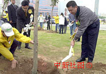 圖片:何厚鏵為回歸一周年植樹 2000年12月18日 15:59 ![]() 何厚鏵為回歸一周年植樹(橫片)。為慶祝澳門回歸一周年,特區(qū)行政長(zhǎng)官何厚鏵十七日在蓮花廣場(chǎng)附近種下一棵紀(jì)念樹。中新社傳真 宗金柱攝