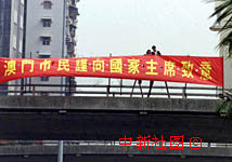 圖文:澳門天橋上掛出市民向江澤民主席致意的橫幅