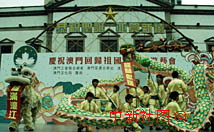 圖片:澳門議事亭前地舉行舞獅慶賀澳回歸一周年 2000年12月20日 19:05 ![]() 市民澳門議事亭前地20日下午舉行民間慶;顒樱忻裎瑾{慶賀澳門回歸祖國一周年。中新社傳真 趙健 攝