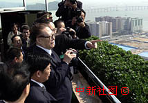 國家主席江澤民21日在澳門中銀大廈樓頂平臺觀看澳門全景。中新社/澳新局傳真