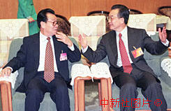 李瑞環(huán)主席(左)與溫家寶副總理親切交談 2000年3月10日 08:56 ![]()