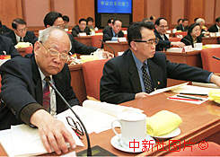 吳康民在全國人大主席團(tuán)會(huì)議上按表決器