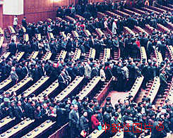 九屆全國人大三次會議十五日閉幕,二千多代表步出人民大會堂。作者:王麗南
