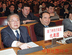 出席十五日在北京舉行的九屆全國人大三次會議閉幕大會的全國人大澳門代表唐星樵(左)等按表決器,通過政府工作報(bào)告。作者:李剛