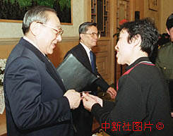 李嵐清與江蘇高級教師丁佩玲 2000年3月6日 08:44 ![]()