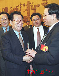 李瑞環(huán)與全國人大天津代表暢談天津發(fā)展大計(jì) 2000年3月7日 08:49 ![]()