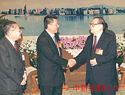 江澤民與澳門(mén)特區(qū)行政長(zhǎng)官何厚鏵握手交談 2000年3月9日 08:49 ![]()