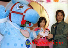 歌星葉佩雯、郭偉良等歌手7日出席香港賽馬會“愛神小馬”見面禮記者會。中新社傳真 鄧慶樂攝