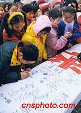 河南鄭州近萬(wàn)名中小學(xué)生簽名拒絕邪教 2001年2月9日 10:31 ![]() 河南省會(huì)鄭州萬(wàn)余名青少年和各界群眾聚集火車站廣場(chǎng),舉行“崇尚科學(xué)、反對(duì)邪教”簽名活動(dòng),同時(shí)鄭州市青年志愿者反邪教宣傳隊(duì)宣告成立。中新社圖 慎重 攝 |