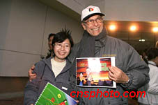 北京第四中學(xué)的學(xué)生二十二日向國際奧委會評估團(tuán)贈送紀(jì)念冊,上面有委員們的漫畫像。中新社圖 趙彤杰 攝