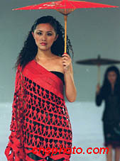中國新絲路模特公司,二十二日晚在北京嘉里中心飯店,舉行赴德國服飾表演。圖為根據(jù)中國少數(shù)民族服飾創(chuàng)新設(shè)計的現(xiàn)代服飾作品。中新社圖 東方 攝
