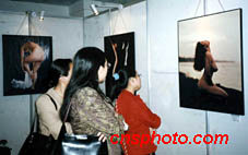 許多女性結(jié)伴觀賞海南二月舉辦的首次人體攝影藝術(shù)展。中新社圖 莫成雄 攝