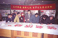 圖4.1:“反對(duì)邪教、保障人權(quán)”百萬(wàn)公眾簽名 2001年3月1日 16:49 ![]() 北京供電局職工參加“反對(duì)邪教、保障人權(quán)”百萬(wàn)公眾簽名活動(dòng)。 |