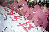 圖5.3:悔悟的法輪功練習(xí)者簽名反邪教 2001年3月1日 17:01 ![]() 悔悟的法輪功練習(xí)者在“反對(duì)邪教、保障人權(quán)”百萬(wàn)公眾簽名活動(dòng)中,在百米長(zhǎng)幅上簽下自己名字,以示與法輪功徹底決裂。 |