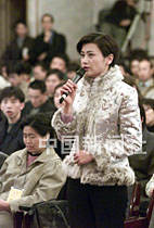 九屆全國人大四次會議七日下午舉行記者招待會,國家發(fā)展計劃委員會主任曾培炎與記者見面。圖為香港鳳凰衛(wèi)視著名記者吳小莉獲得提問機會。中新社記者 毛建軍 攝