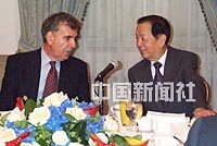 圖文:錢(qián)其琛與紐約主流媒體負(fù)責(zé)人共進(jìn)早餐 2001年3月20日 23:02 ![]() 錢(qián)其琛與時(shí)代華納首席執(zhí)行官萊文親切交談。作者:胡啟華 中新網(wǎng)紐約3月20日消息(記者 陳建)正在美國(guó)進(jìn)行訪問(wèn)的國(guó)務(wù)院副總理錢(qián)其琛,今天早晨在紐約與當(dāng)?shù)刂髁髅襟w負(fù)責(zé)人共進(jìn)早餐。圖為錢(qián)副總理正與美國(guó)在線—時(shí)代華納首席執(zhí)行官萊文親切交談。 |