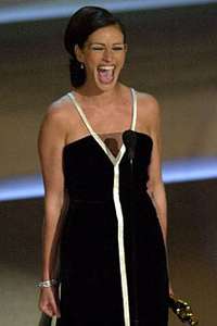 圖文:朱莉亞·羅伯茨獲封奧斯卡影后 2001年3月26日 12:40 中新網(wǎng)洛杉磯3月25日消息:(記者 陳建)奪獎(jiǎng)呼聲極高的“大嘴美人”朱莉亞·羅伯茨(Julia Roberts)憑《永不妥協(xié)》(ERIN BROCKOVICH)一片如愿榮登第73屆奧斯卡影后寶座。 她曾以主演《漂亮女人》、《我最好朋友的婚禮》、《諾丁山》等浪漫輕喜劇聞名;但朱莉亞·羅伯茨稱,《永不妥協(xié)》是自己“演得最棒的片子,因?yàn)榻巧挥谔魬?zhàn)性,十分飽滿”。 這個(gè)獎(jiǎng)項(xiàng)的提名者還包括《政界風(fēng)云》的瓊·阿倫、《濃情巧克力》的法國女星朱麗葉·比諾什、《你可信任我》的勞拉·琳妮和《夢想悲歌》的艾倫·伯絲汀。 |