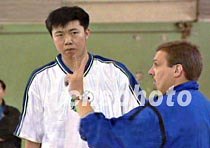 三月二十八日下午,美國芝加哥小牛隊(duì)助理教練小尼爾森,在北京先農(nóng)壇體育場對中國男籃新秀王治郅進(jìn)行了單獨(dú)訓(xùn)練,大郅的出色表現(xiàn)讓小尼爾森驚訝不已。此舉是為大郅能盡快了解小牛隊(duì)的技戰(zhàn)術(shù)而特意安排的。中新社圖