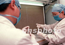 北京大學(xué)第三醫(yī)院人類精子庫建于一九八六年,十五年來對治療不孕癥、提高人口素質(zhì)、預(yù)防遺傳病和提供生殖保險, 醫(yī)術(shù)精湛。圖為醫(yī)務(wù)人員正在超凈工作臺進行精液處理。中新社記者 張勤 攝