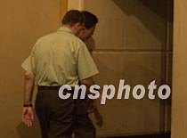 美國駐華使館武官席樂高準(zhǔn)將十一日晚十時四十分在海口文華大酒店新聞發(fā)布會上說,現(xiàn)在還不能公布一個機組人員離境的時間表,然后匆匆忙忙從后門離開。中新社記者 賈國榮 攝