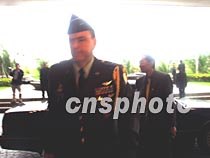 美國駐華使館武官席樂高準將十二日凌晨秘密離開?谖娜A大酒店,送別美方機組人員后又回到酒店。中新社記者 莫成雄 攝
