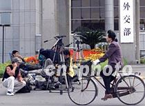 在北京外交部大樓舉行的中美談判,引起中外媒體記者的關注。在外交部門口擺開陣勢等著抓拍新聞的中外記者成為京城的一道風景。中新社記者 滿會喬 攝