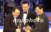 中國大陸影帝姜文29日在香港舉行的“第二十屆香港電影金像獎頒獎典禮”上,與香港名導(dǎo)演吳思遠(yuǎn)將最佳導(dǎo)演獎,頒發(fā)給李安。中新社傳真 洪少葵 攝