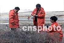 中國青藏鐵路今年下半年將正式開工建設(shè)。將要實施的青藏鐵路二期工程是從青海格爾木南山口車站延出,跨過昆侖山口和唐古拉山口,進入藏北高原,到達拉薩市,全長1118公里。圖為已派出的十個勘探隊,九個勘測隊,共1640名技術(shù)員在青藏高原作業(yè)。作者:中新社