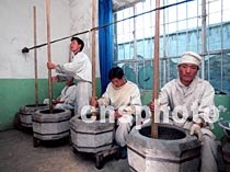 圖:藏醫(yī)學(xué)院學(xué)員們親自研磨礦物質(zhì)藥材 2001年5月9日 19:42 ![]() 中國(guó)藏醫(yī)藥最高學(xué)府——拉薩“藏醫(yī)學(xué)院”在教學(xué)上承傳藏醫(yī)藥傳統(tǒng)的傳授方式,學(xué)員們?cè)诓厮幷n上親自研磨礦物質(zhì)藥材,以便未來在高原上獨(dú)立行醫(yī)。中新社記者 鄒憲 攝