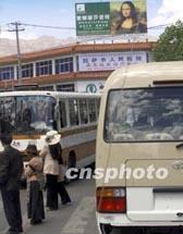 拉薩街頭的現(xiàn)代氣息日漸濃厚,達芬奇名畫中帶著神秘微笑的蒙娜麗莎,被印制在陶瓷制品上,豎立的街頭。中新社記者 滿會喬 攝