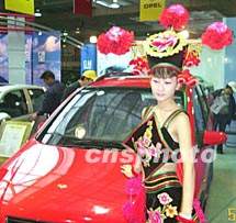 汽車展上身著少數(shù)民族服飾的少女 2001年5月20日 20:49