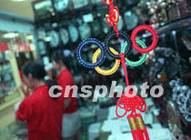 北京一家商廈正在出售用五色絲線編織的奧運(yùn)五環(huán)結(jié),隨著2008年申奧表決日期的臨近,北京人的奧運(yùn)情結(jié)越系越緊。中新社記者 王瑤 攝