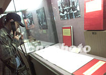 位于拉薩的西藏博物館內(nèi)展出1951年簽定的《中央人民政府和西藏地方政府關(guān)于和平解放西藏辦法的協(xié)議》的文本,引起參觀者關(guān)注。2001年5月23日是西藏和平解放五十周年紀(jì)念日。中新社記者 滿會喬 攝
