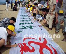 “華夏故土地圖”推廣、海南取土儀式二日在三亞南山舉行。在現(xiàn)場(chǎng)還進(jìn)行了 一場(chǎng)聲勢(shì)浩大的“支持北京申奧簽名活動(dòng)”。中新社圖 王辛莉 攝