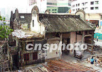 始建于雍正元年,孫中山曾批示要“永遠(yuǎn)保留”的廣州錦綸會館,因位于正在修建的康王路上,將被整體向后向西平移一百五十米,成為中國第二例文物建筑平移工程。圖為將被平移的錦綸會館。中新社圖 羅仰明 攝