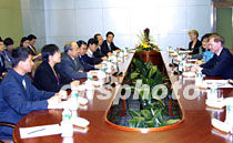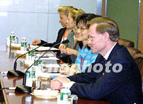石廣生會(huì)見美貿(mào)易代表 雙方還將進(jìn)一步商議 2001年6月5日 15:44 ![]() 石廣生與美國(guó)貿(mào)易談判代表羅伯特·佐立克一行會(huì)晤。中新社記者 潘索菲 攝 ![]() 二○○一年APEC貿(mào)易部長(zhǎng)會(huì)議將于六月六日開幕。會(huì)議主席、中國(guó)外經(jīng)貿(mào)部部長(zhǎng)石廣生和中國(guó)代表團(tuán)團(tuán)長(zhǎng)、外經(jīng)貿(mào)部首席談判代表龍永圖,五日在上海國(guó)際會(huì)議中心與經(jīng)濟(jì)體代表團(tuán)團(tuán)長(zhǎng)舉行雙邊會(huì)談。圖為美國(guó)貿(mào)易談判代表羅伯特·佐立克。中新社記者 潘索菲 攝