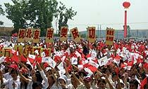 中新網(wǎng)西安6月5日消息:(記者呂振亞)今天上午,距離古城西安五十公里處的翠華山畔,響徹著陣陣激昂的歡呼聲:“申奧之旅一路順風,北京申奧一定成功”。二萬二千多名西安翻譯學院的學生在鳳凰衛(wèi)視主持人許戈輝的帶領下,齊聲共祝北京好運。 今天是“北京——莫斯科申奧萬里行”車隊抵達西安后的第一天活動。上午,車隊應邀來到中國民辦高校的先鋒——西安翻譯學院,與師生一起作短暫的相聚。學生們在面對翠華山的廣場上,搭起了“同在一方熱土”的大舞臺,“五環(huán)之夢”、“為北京加油”等自編自導的節(jié)目,展現(xiàn)了學子們盼望奧運的熱情。 當車隊一踏進陜西,我們就感受了古城西安人民支持北京申奧的熱誠。昨天下午,由陜西日報組織的歡迎隊伍在黃河渡口大橋上為車隊獻花,晚上又舉行盛大晚宴招待遠行的將士。今天中午,西北電力公司與車隊聯(lián)歡,公司員工告訴我們,他們正在為“西電東送”緊張工作,力爭早日打通北部通道。我們獲知,“西電東送”計劃事關北京申奧,因為到時北京地區(qū)將不用再進行火力發(fā)電,可以大大減少污染,實現(xiàn)“綠色奧運”。 車隊回到賓館已是下午二時許,我們稍作“調(diào)整”,又慕名采訪一位世紀老人。他就是中國體育界仍健在的元老王耀東。 王老1919年和1921年曾參加遠東運動會的長跑和藍球比賽,1984年赴美國參觀第23屆奧運會,他是中國近百年體育發(fā)展史的參與者和見證人。他今年已一百零一歲,但仍十分健談。作為一名從舊中國“東亞病夫”的痛苦中走過來的運動健將,王老對北京申奧的意義有更為深切的理解。他拉著采訪記者的手反復說,“北京申辦奧運會,是中國強大的表現(xiàn)。我2008年爭取到北京看看咱們中國人自己辦的奧運會。”(完) |
