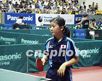 2001中國乒乓球大獎賽六月六日至九日在海口舉行。本次大獎賽年齡最小的運動員是日本運動員福原愛,年僅十二歲。她在七日的第二輪比賽中以一比三負(fù)于中國的白楊。中新社圖 莫成雄 攝