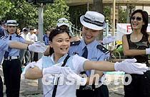 圖:莫慧蘭和女交警學(xué)指揮交通 2001年6月8日 10:06 ![]() 參加“申奧萬里行”的莫慧蘭向女交警學(xué)指揮交通 中新社圖 魏孝明 攝 |