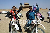 中新網(wǎng)嘉峪關(guān)6月11日消息:(記者呂振亞)一路西行,穿過戈壁沙灘,今天下午四時(shí)許,“申奧萬里行”鳳凰車隊(duì)抵達(dá)“天下第一雄關(guān)”嘉峪關(guān)。 二位英雄早早等候在關(guān)外,與車隊(duì)一起為北京申奧助威。他們是剛剛從珠穆朗瑪峰挑戰(zhàn)極限載譽(yù)歸來的楊華和張長(zhǎng)順。五月二十六日,楊張二人駕駛國(guó)產(chǎn)摩托車從嘉峪關(guān)出發(fā),六月一日攀登珠峰至大本營(yíng),創(chuàng)造了駕車登山五千八百米的吉尼斯世界紀(jì)錄。恰逢申奧車隊(duì)抵達(dá)這里,當(dāng)?shù)卣匾庠陉P(guān)外舉行盛大歡迎儀式,既為二位英雄慶功,又為北京申奧助威。 儀式過后,由楊張二位車手引領(lǐng)的摩托車隊(duì)帶領(lǐng)申奧車隊(duì)入關(guān),直奔長(zhǎng)城第一墩。一條長(zhǎng)龍橫穿古老長(zhǎng)城,一架裝有攝像機(jī)的小型飛機(jī)飛躍上空,壯觀的申奧車隊(duì)盡收其中。 按計(jì)劃,車隊(duì)明天將出關(guān),前往敦煌。(完) |