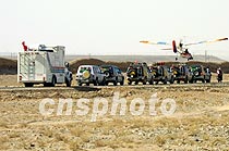 ![]() 六月十一日下午四時(shí)許,“萬里行”申奧鳳凰車隊(duì)抵達(dá)嘉峪關(guān),圖為車隊(duì)行進(jìn)在戈壁灘上,飛機(jī)正在航拍車隊(duì)在穿躍“天下第一雄關(guān)”時(shí)的情景。魏孝明 攝 ![]() 六月十一日下午四時(shí)許,“萬里行”申奧鳳凰車隊(duì)抵達(dá)嘉峪關(guān),圖為車隊(duì)行進(jìn)在戈壁灘上,飛機(jī)正在航拍車隊(duì)在穿躍“天下第一雄關(guān)”時(shí)的情景。魏孝明 攝