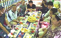 圖:“家訪”葡萄溝里的民族家庭 2001年06月17日 09:58 ![]() ![]() 6月16日,“申奧萬里行”鳳凰車隊離開吐魯番前,“家訪”葡萄溝里的民族家庭。圖為遠征將士圍坐在家農(nóng)葡萄院內(nèi)的坑上美美地吃著哈密瓜。中新社圖 魏孝明 攝