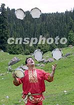 圖:哈薩克族藝人表演民族雜技 2001年06月17日 21:49 ![]() 哈薩克藝人表演民族雜技,五個(gè)手鼓在空中飛舞,形如五環(huán)交疊,預(yù)祝北京好運(yùn)。中新社圖 魏孝明 攝